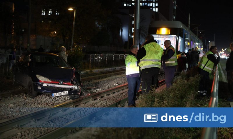 Лека кола с врачанска регистрация се блъсна в трамвай тази вечер и се качи върху трамвайните релси в София, недалеч от "Пирогов".