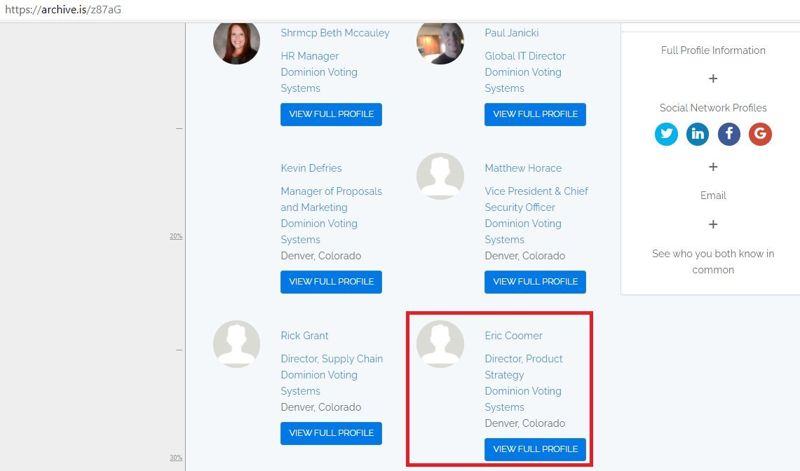 По-късно Ерик Кумър е повишен до висш служител по стратегиите и сигурността на гласуващите системи, но след това Кумър е премахнат от страницата на директорите на Dominion.