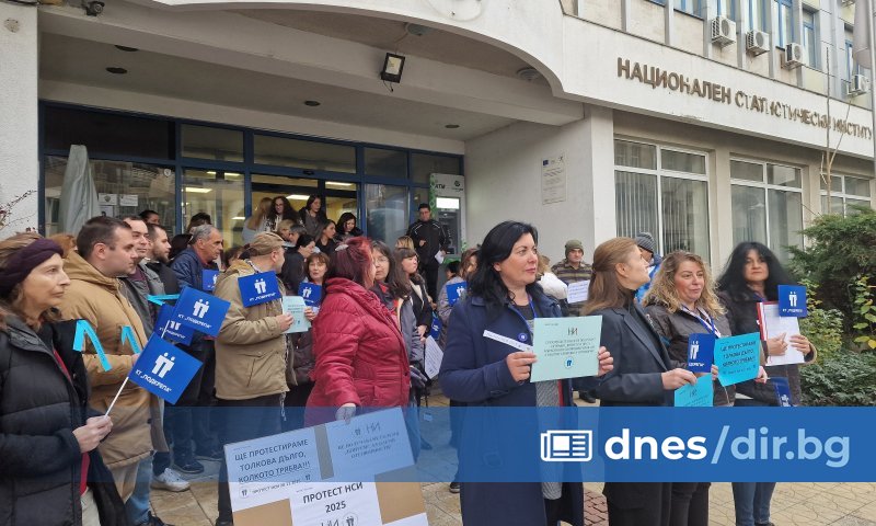 От националната статистика искат 20% увеличение от 2026 г. на "унизителните" им възнаграждения Чуйте статията: Работещи в Националния статистически институт (НСИ) излязоха на обяд на протест пред сградата на централното управление с искане възнагражденията им да се повишат с 20 на сто.