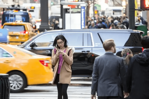Девочка с телефоном на Манхэттене, Нью-Йорк, 27 февраля 2017 года. (Samira Bouaou/The Epoch Times)